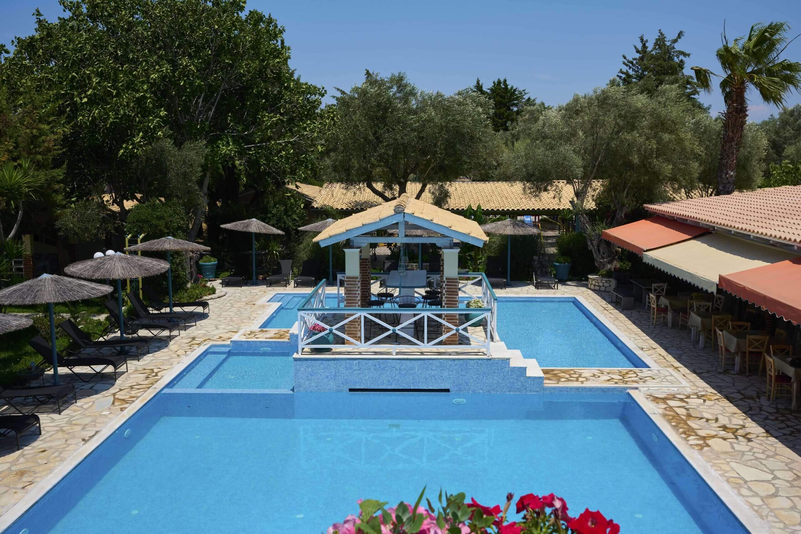 Discover Villagio Maistro, an exotic getaway surrounded by stunning gardens, towering trees, and palms in the beautiful Agios Ioannis area. This spacious complex offers a true oasis for relaxation, featuring two large swimming pools for adults and a separate, fun pool for kids. Enjoy quality time with loved ones at one of the four spacious barbeque areas, perfect for a casual meal under the shade. Located just a 10-minute walk (700m) from the famous Agios Ioannis beach, known for its windsurfing, and only 1.5km from the vibrant Lefkada Town, Villagio Maistro provides the perfect blend of tranquility and convenience.